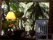 | Looking out from my tree house with cedar ceilings that go up 25 feet. I live above my studio in a magical tree shaded neighborhood near the bay surrounded by bayous flowing out to sea. |